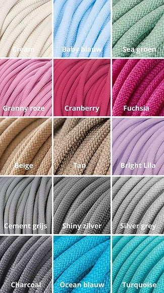 Vul hier 3 kleuren in voor de gevlochten afwerking en geef aan welke afwerking kleur het meeste voor mag komen